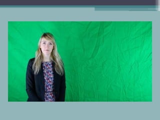 The document discusses the process of creating a weather report for a TV news programme using a green screen. Key steps included using a green screen to insert moving images and symbols behind the presenter, ensuring the presenter remained in the left corner of the screen during gestures and pointing, and including a map of the Midlands region along with symbols and a text strip to convey weather details for specific areas and times.