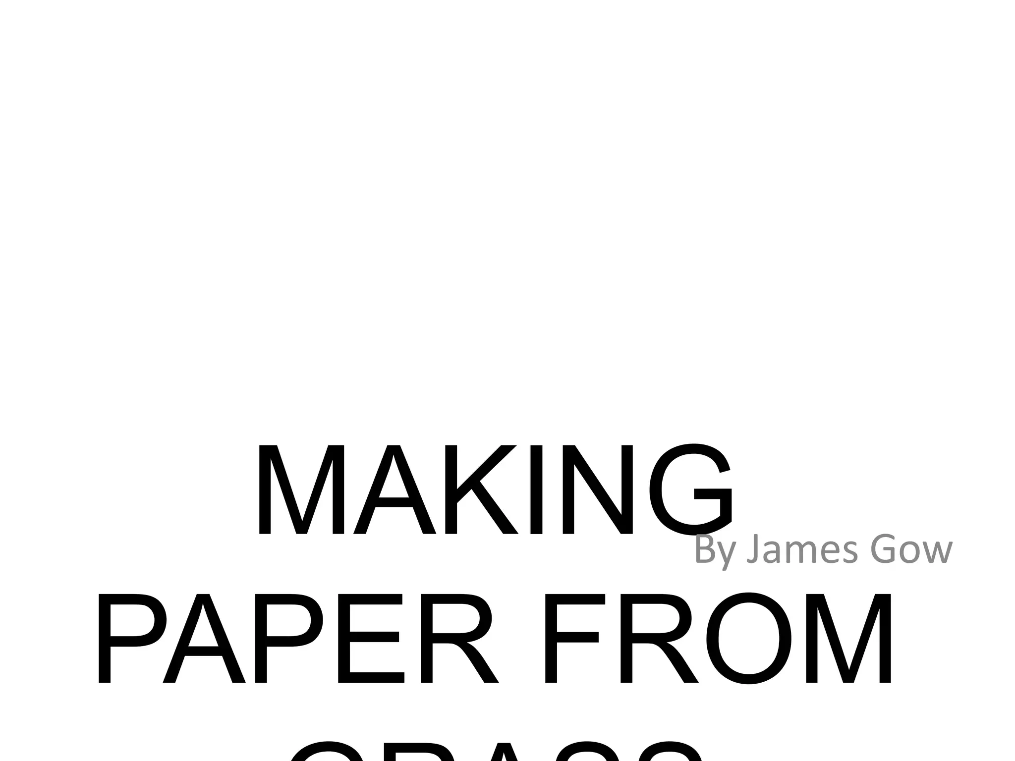 The document outlines the process of making paper from grass, which involves several steps including collecting, crushing, digesting with caustic soda, washing, bleaching, and forming the final paper. Each step includes physical or chemical changes to transform the grass into paper. The methods used employ basic tools like scissors, mortars, beakers, and heat sources.