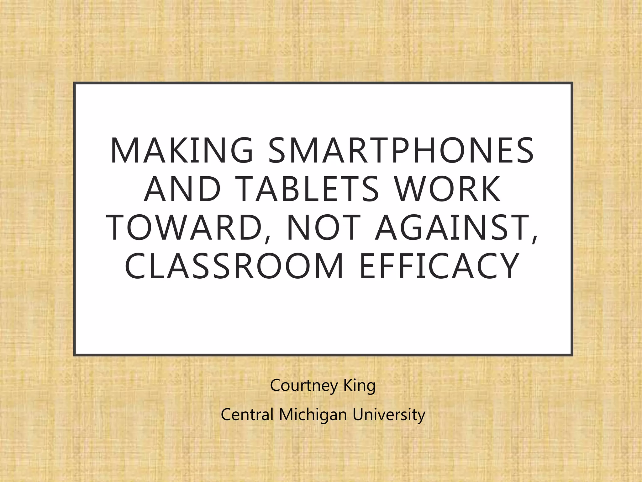 This document discusses using smartphones and tablets (BYOD) in the classroom. It begins by asking questions about BYOD and defining it as students bringing their own internet-connected devices to class. It then discusses reasons to encourage BYOD, including keeping students engaged, easily gathering student data, and providing a study tool. Both arguments against and research supporting BYOD are presented. Examples of apps that can be used with BYOD like Nearpod, Socrative, SeeSaw, and Plickers are described. Potential issues with BYOD like access and technology problems are addressed. The document concludes by providing a checklist for determining if a technology is appropriate for one's teaching context.