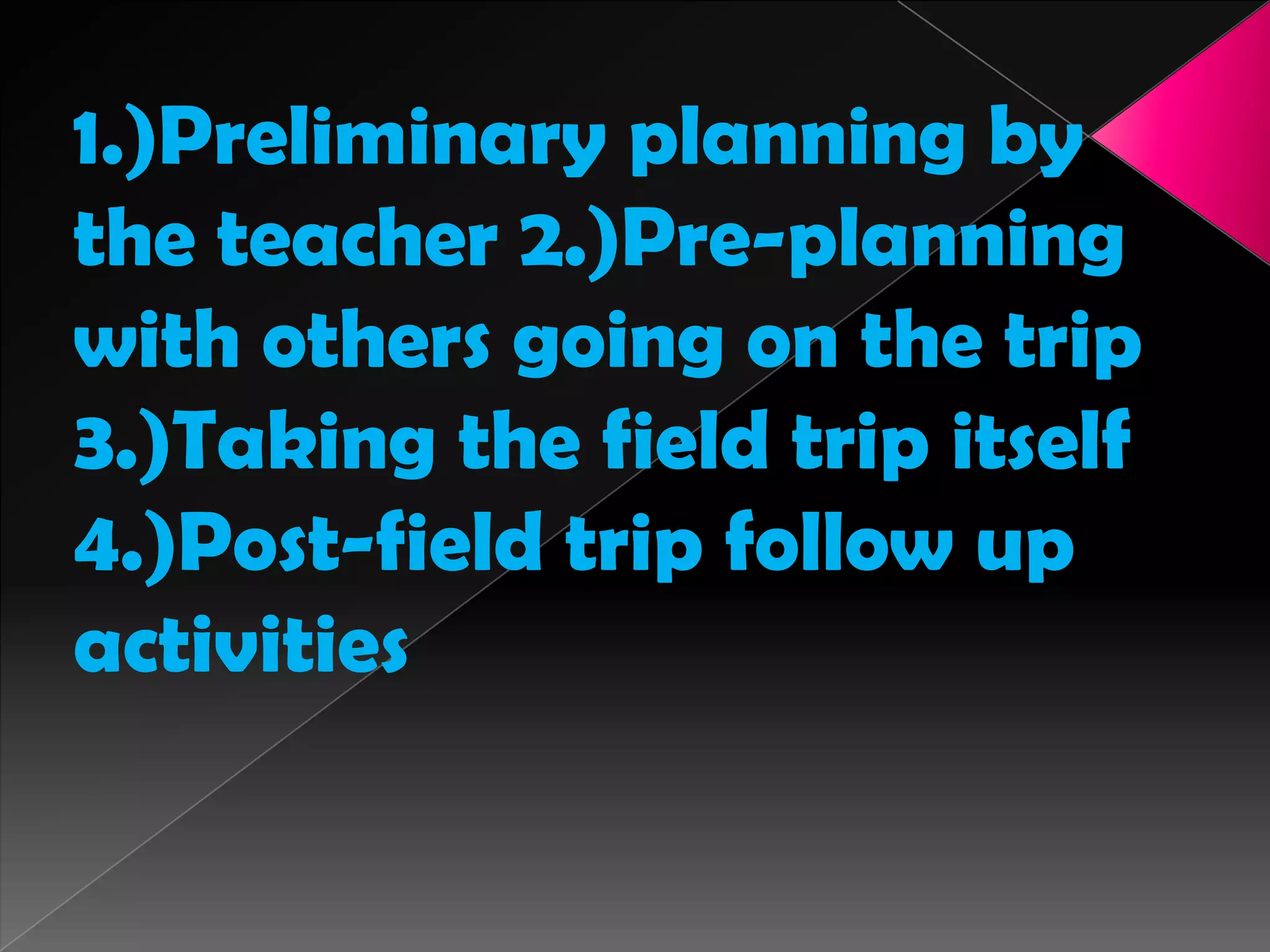 This document discusses planning for and conducting effective field trips. It recommends that teachers conduct preliminary planning, coordinate with others attending the trip, and plan post-trip follow up activities. Pre-planning involves setting objectives, safety procedures, documentation methods, and schedules. During the trip, the teacher should check-in with students, ensure timeliness and participation. Afterwards, the benefits and potential improvements should be evaluated to determine if the educational goals were achieved and if the trip should be recommended to other classes.