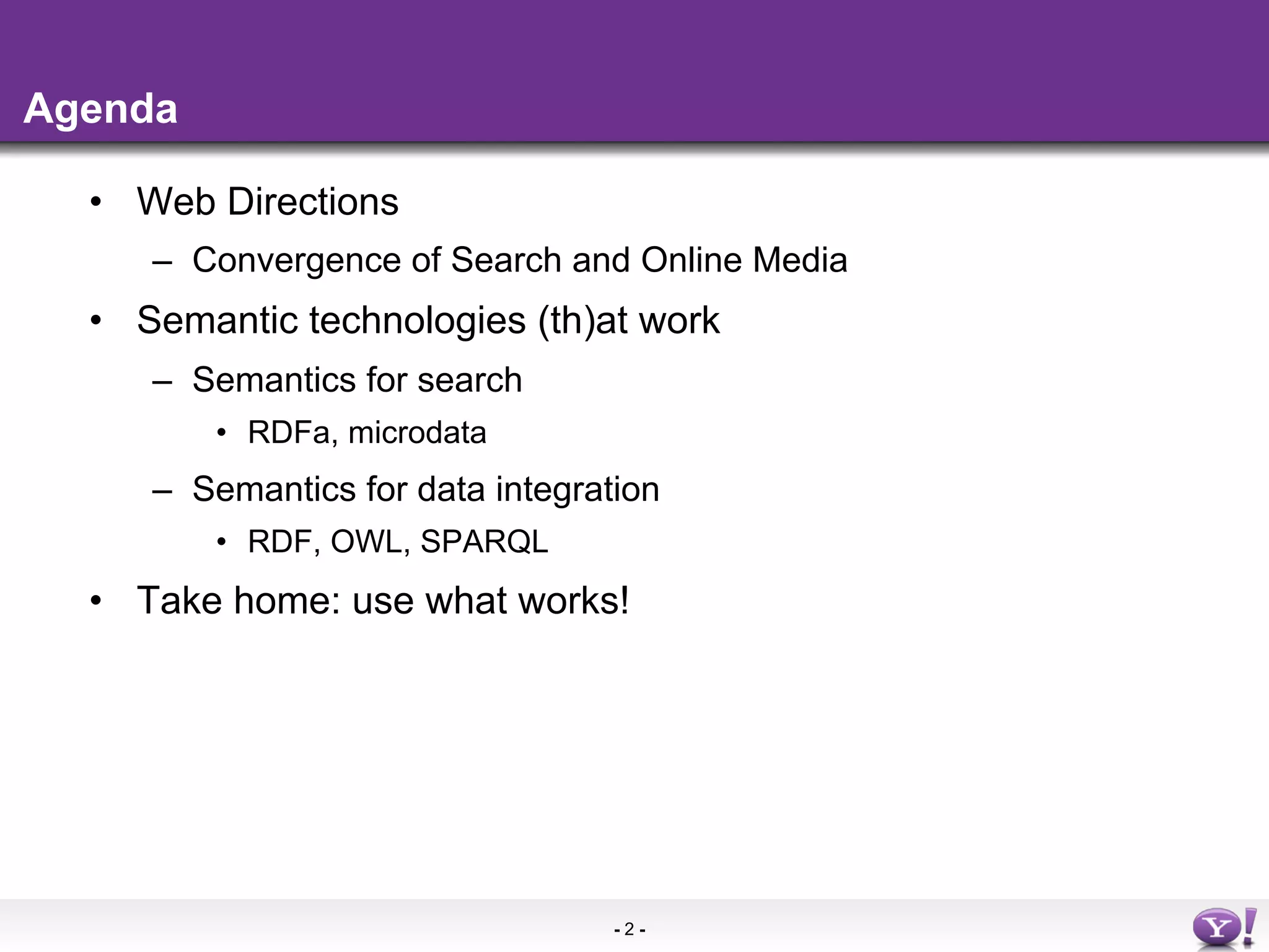 The document discusses the evolution and importance of integrating semantic technologies into search mechanisms and online media. It covers various techniques for improving search relevance, such as RDF, RDFa, and microdata, highlighting their roles in data integration and enhancing user interaction. The document emphasizes the need for a shared understanding of data representation to optimize search experiences and behavior personalization.