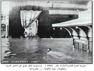 يتحدث المستند عن صور نادرة، بما في ذلك صورة نادرة للكعبة المشرفة أثناء السيول، ويحتوي على دعاء لطلب الخير في الدنيا والآخرة وزيارة البيت الحرام.