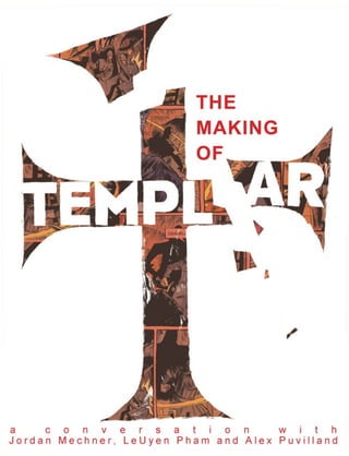 The document provides background on the graphic novel Templar, which was a collaborative project between Jordan Mechner, LeUyen Pham, and Alex Puvilland that took 5 years to complete. It discusses the development of the main characters in the novel, including Martin, Bernard, Isabelle, the Priest, Jehan, and Von Berg. Mechner, Pham, and Puvilland discuss their creative process and how they worked to bring the characters to life through discussions on character design and script revisions.