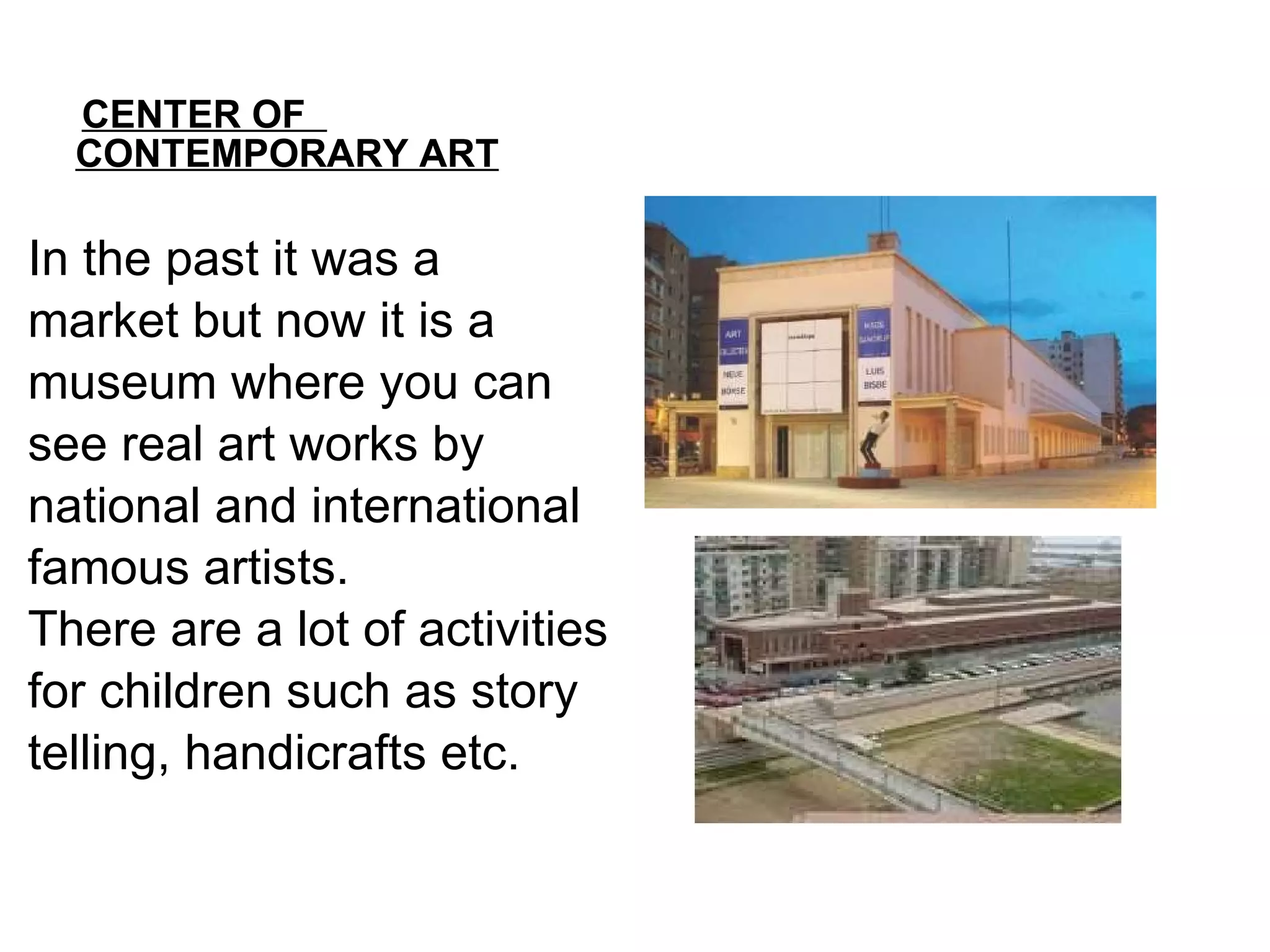 The document provides information on several attractions in Malaga, Spain, including museums, theaters, and natural parks. It also discusses typical foods, festivals, and flamenco music and dance that are part of the culture in Malaga. Some highlights mentioned include the Contemporary Art Museum, Cervantes Theatre, Museum of Popular Arts and Customs, El Torcal nature park, Sierra de las Nieves nature park, Maro cliffs nature park, Casa del Guardia wine cellar, beachside restaurants called "Chiringuitos", Holy Week festival, Midsummer festival, Malaga Fair, and dishes such as gazpacho, fried sardines, and salads featuring potatoes, oranges and cod.