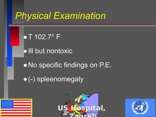 - 34 year old male from Pakistan presents with fever, rigors, and sweats for 3 days after travel to Croatia 14 days prior. Physical exam is notable for fever of 102.7F but otherwise unremarkable.