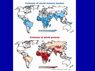 La malaria ha un impatto devastante, con 300-500 milioni di casi e oltre 2 milioni di morti all'anno, principalmente in Africa sub-sahariana. La resistenza ai farmaci sta aumentando, complicando ulteriormente il trattamento, e la malaria è recentemente riemersa in paesi dove era stata eradicata. Investimenti in ricerca e sviluppo per nuovi farmaci sono insufficienti, con solo il 10% delle risorse destinate a patologie che colpiscono il 90% della popolazione mondiale.