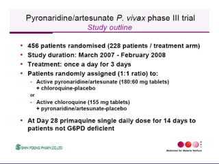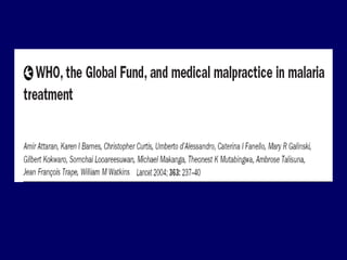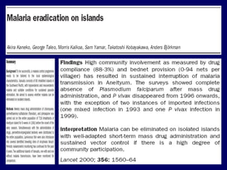 This document discusses malaria diagnosis and treatment in border areas and highlights several key points: