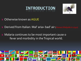 The document provides a historical overview of malaria. Some key points: