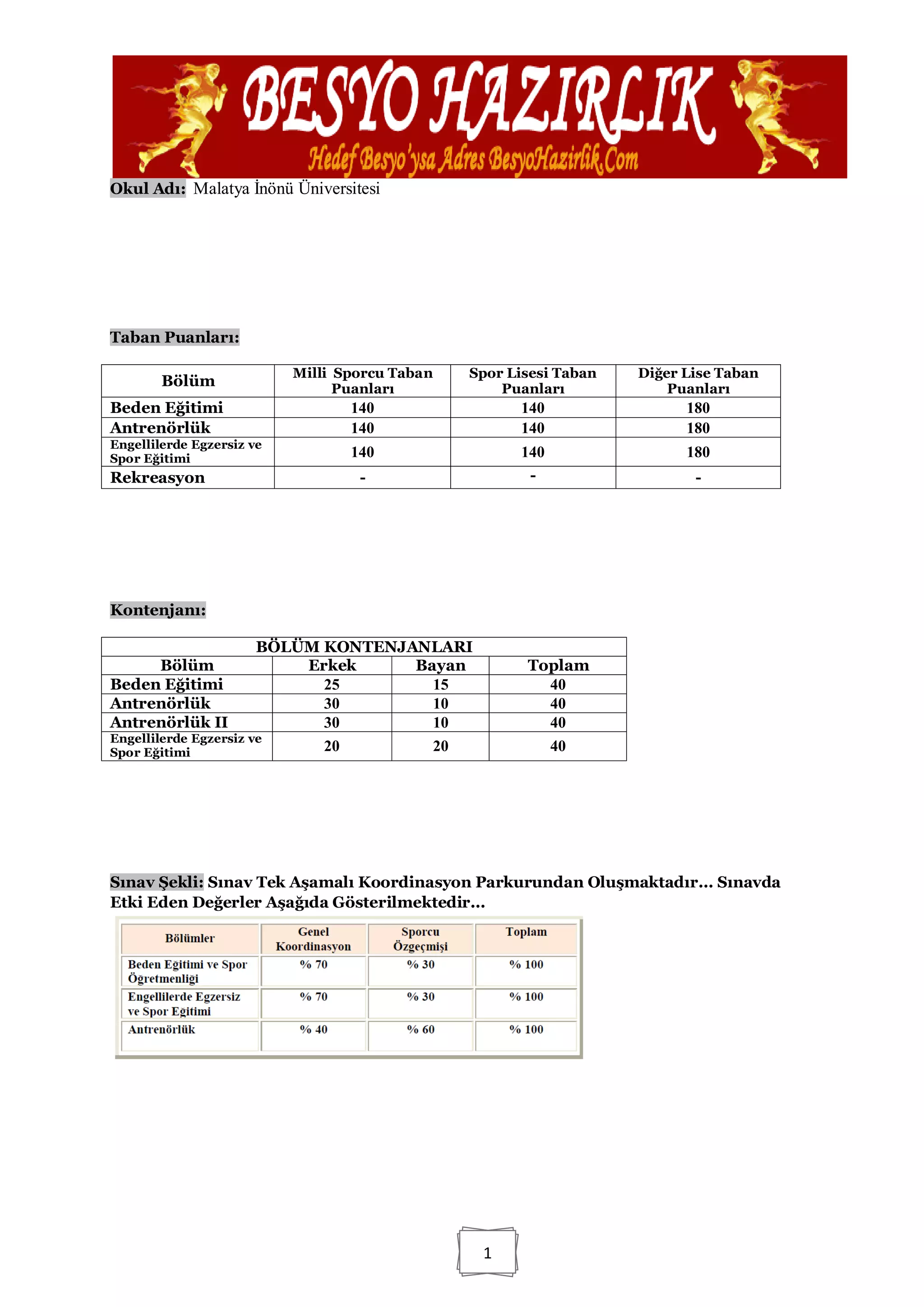 BÖLÜM KONTENJANLARI