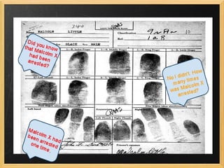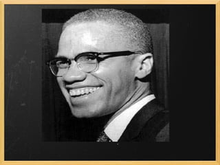 Malcolm X was an influential African American leader who advocated for black rights and empowerment. He was born Malcolm Little in 1925 and later changed his name to Malcolm X, rejecting his slave name. Malcolm X was assassinated in 1965 at the age of 39 in New York City. He famously said that black people must take freedom and equality for themselves rather than waiting for others to grant it. His teachings continued to impact the civil rights movement after his death.