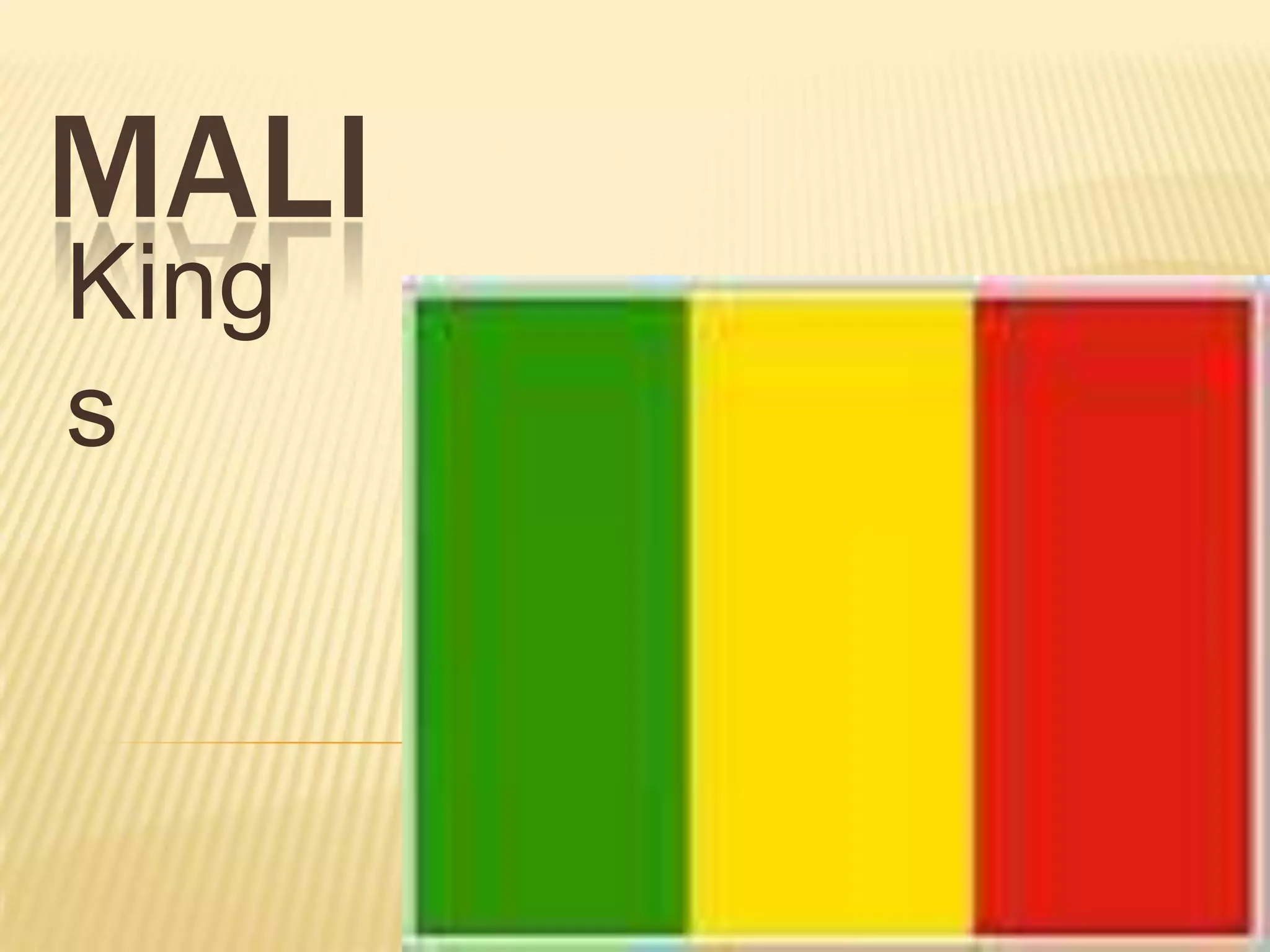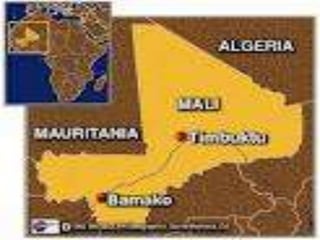 Sundiata was the first king of Mali who freed the land from Samanguru. Mansa Musa made Islam the official religion of Mali and led a famous pilgrimage to Mecca. The document provides information about kings of Mali, including that Mansa is a title for a king or leader, and that the 12 kings formed a royal council to elect the Mansa. It also defines related vocabulary terms like empire and pilgrimage.