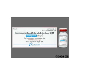 Malignant hyperthermia is a serious, life-threatening condition caused by a genetic defect in the ryanodine receptor or calcium channel that makes individuals susceptible to triggering agents like volatile anesthetics and succinylcholine. When exposed to these agents, calcium is released from the sarcoplasmic reticulum in muscle cells, increasing metabolism and causing symptoms like fever, muscle rigidity, and acidosis. Diagnosis involves testing for genetic mutations or abnormal responses to caffeine and halothane. Treatment requires discontinuing triggers, dantrolene administration, supportive care, and cooling to reduce fever and its complications.