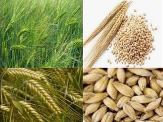 Malt extract is obtained from dried barley grains of the barley plant. Barley is widely cultivated around the world, with major producers being the United States, Russia, Canada, India, and Turkey. To produce malt extract, dried barley grains are germinated and then dried. The malt is extracted with water and concentrated to produce malt extract. Malt extract contains enzymes, sugars like maltose and dextrin, and is used as a starch digesting aid and laxative due to its amylolytic properties.