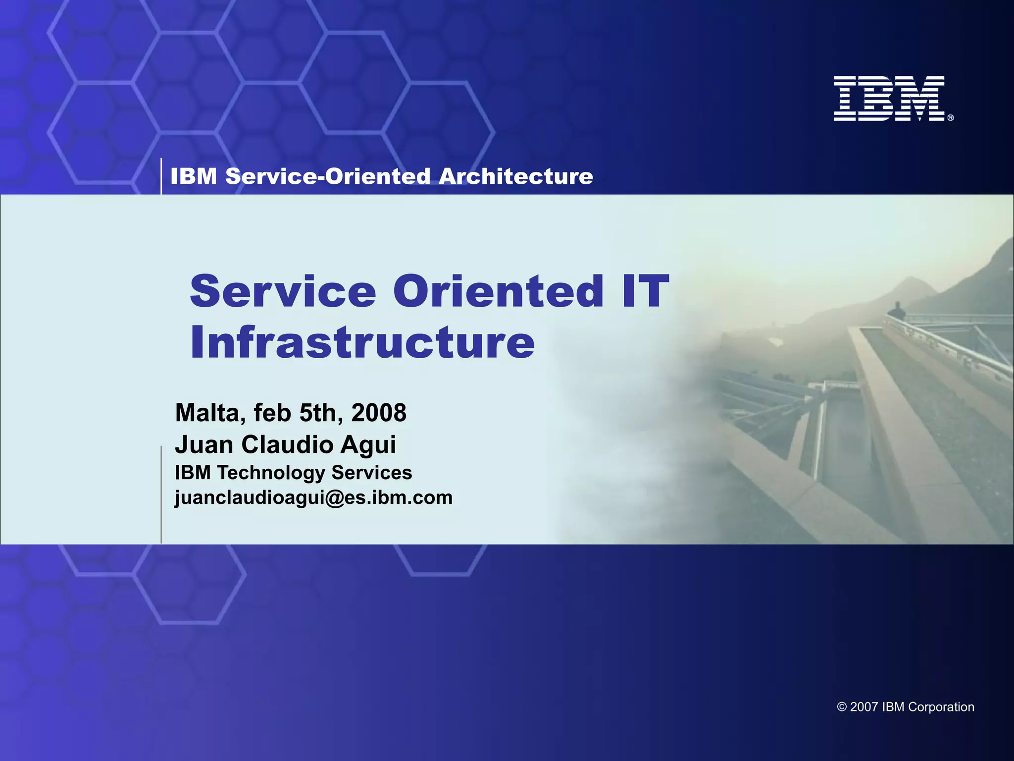 The document discusses how service-oriented architecture (SOA) impacts IT infrastructure and introduces new considerations for performance, security, availability, service management, and virtualization. Key points include: