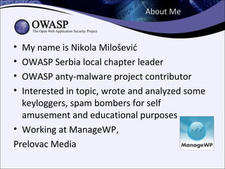 The document explores the history and evolution of malware, detailing its various forms and notable examples from the first known virus, Brain, in 1986 to sophisticated threats like Stuxnet in 2010. It includes discussions on malware types such as viruses, worms, Trojans, and rootkits, as well as analysis techniques for understanding and combating these threats. The document emphasizes the ongoing challenges in cybersecurity and the methods used to track and reverse-engineer malicious code.