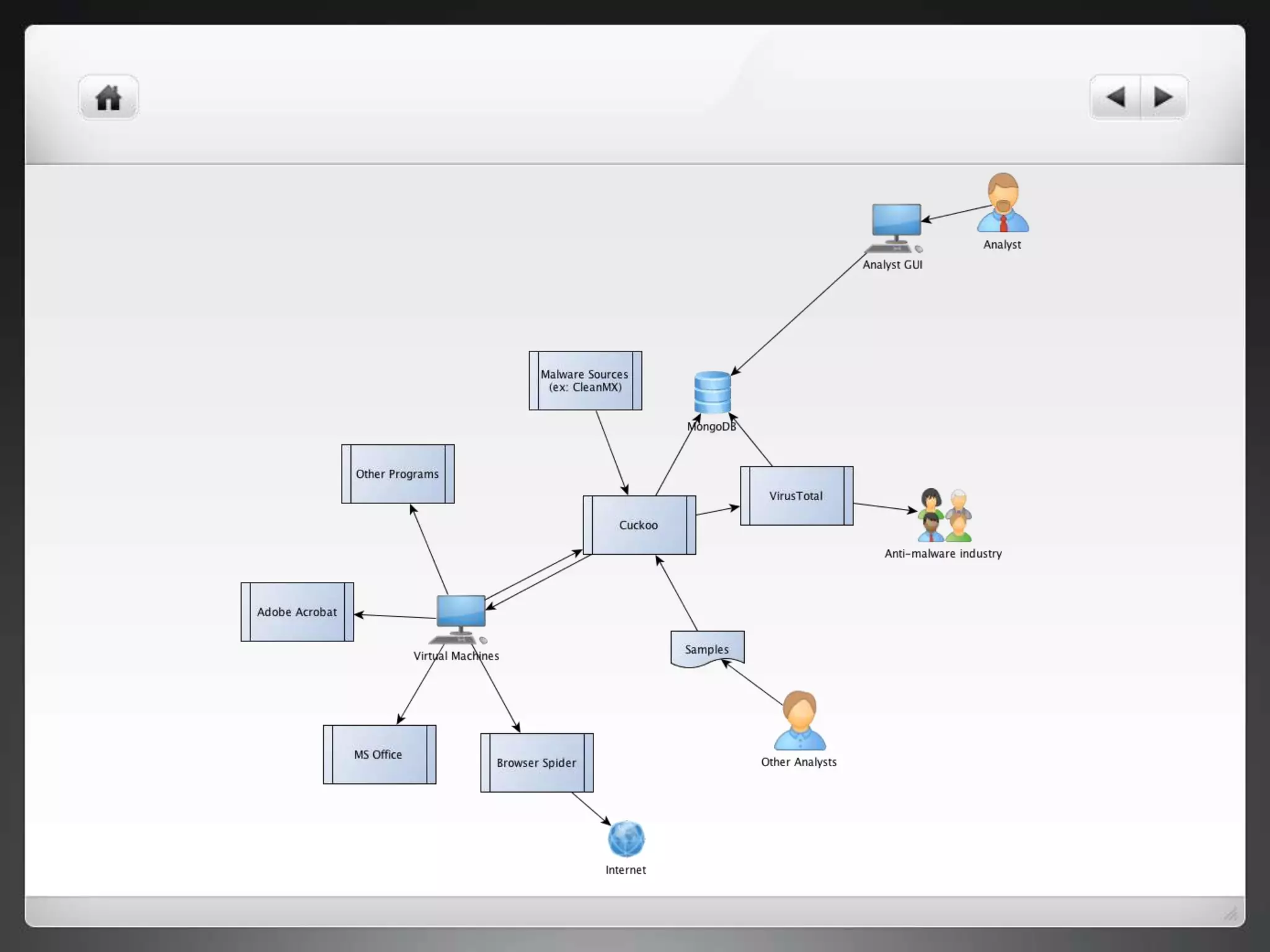 The document notes that manually analyzing malware can be time consuming and boring. MART was created to automate parts of the process such as sample acquisition, analysis using tools like Cuckoo Sandbox, and reporting. This reduces the time spent by malware analysts and allows them to focus on more complex samples. The system also aims to address limitations of virtual machine-based analysis by integrating additional techniques. Overall, MART streamlines malware analysis as a hobby while cutting costs compared to paying for commercial solutions.