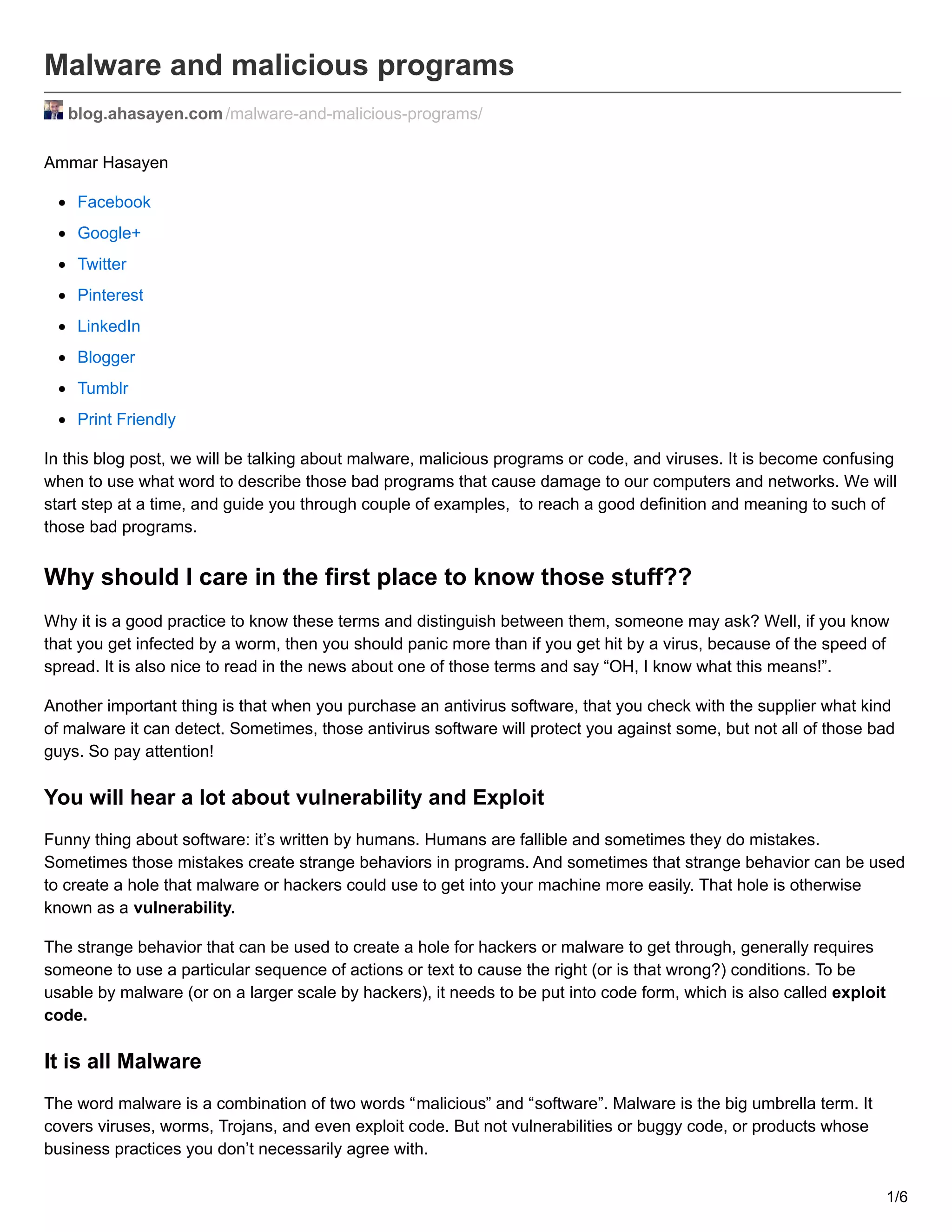 The document provides a comprehensive overview of malware, including definitions, types (viruses, worms, trojans, etc.), and their behaviors and delivery methods. It emphasizes the importance of understanding these terms for better cybersecurity practices and highlights the potential risks associated with different malware types, such as data theft and system disruption. Additionally, it discusses various malware actions, including spyware, ransomware, adware, and botnets, and the significance of securing devices against these threats.