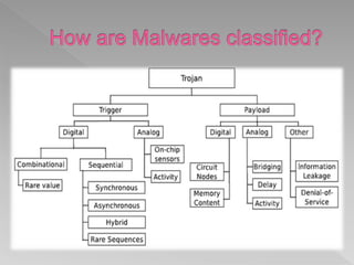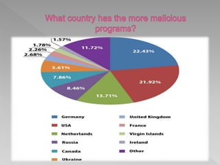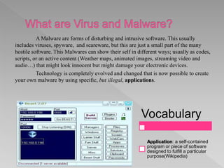 Malware refers to intrusive software designed to harm electronic devices, often manifesting as viruses, spyware, or scripts that appear harmless. The creation and distribution of malware are global issues, with few countries implementing specific laws to address the problem, complicating accountability and enforcement. Despite the existence of anti-malware programs, the increasing sophistication of these threats continues to challenge privacy and security online.