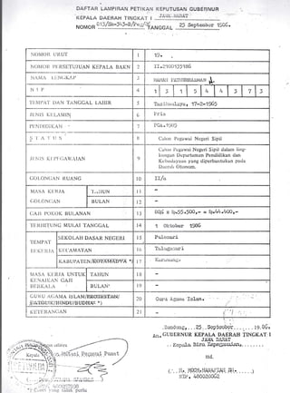 Dokumen ini berisi keputusan gubernur Jawa Barat tentang pengangkatan dan kenaikan pangkat pegawai negeri sipil, termasuk rincian gaji dan masa kerja. Terdapat informasi mengenai pegawai yang namanya dicantumkan, serta peraturan dan syarat yang harus dipenuhi untuk kenaikan gaji. Keputusan ini ditetapkan di Bandung pada tanggal tertentu dan diharapkan agar yang bersangkutan mengetahui dan menggunakan informasi ini sesuai kebutuhan.