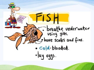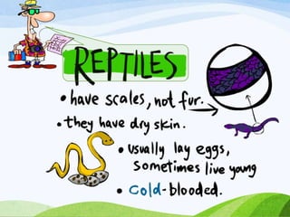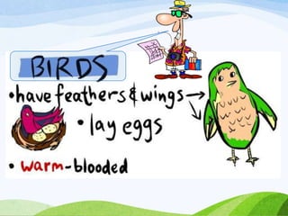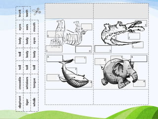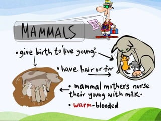 This document discusses the key characteristics of mammals and provides examples of different types of mammals. It notes that mammals have milk glands to feed their babies and have teeth. The document then lists different mammal examples and provides instructions for a classroom project where students create their own zoo by identifying mammals.