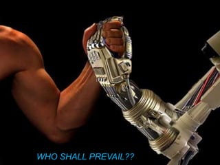 The document discusses the evolution and comparison between humans and machines, addressing the complexities of human consciousness, the limitations of machines, and the implications of artificial intelligence. It highlights that while machines can perform tasks efficiently, they lack the intrinsic qualities of human consciousness, emotions, and creativity. Ultimately, the text concludes that humans, with their unique abilities and moral values, will prevail over machines, underscoring the significance of human oversight in the development and use of technology.