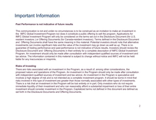 This document discusses how managed futures strategies can provide stable, predictable returns during periods of economic and market stress by capturing risk premia priced into various asset classes. It explains that the sources of return for managed futures are the market mechanisms that price risk premia into futures prices for commodities, currencies, fixed income, and equities. Managed futures managers use systematic strategies to identify and capture these risk premia across a diversified portfolio of assets and markets in order to generate uncorrelated returns.