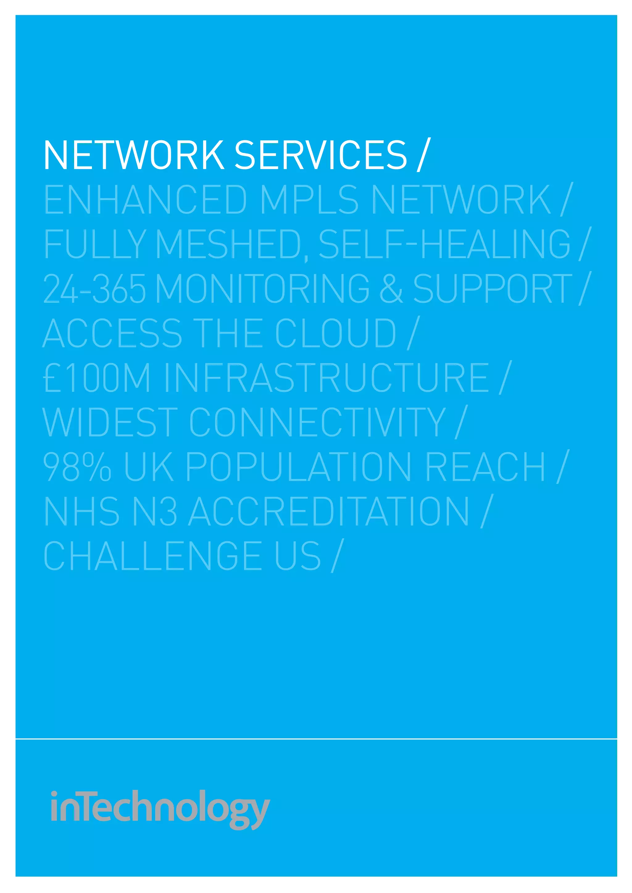Intechnology offers a robust 'enhanced MPLS' network service designed to meet modern business needs with a fully meshed, self-healing infrastructure, delivering 98% UK population reach. Their service combines high-quality connectivity options, 24/365 monitoring, and expert support, ensuring reliability and optimal performance for both commercial and public sectors. The network serves as a conduit for various managed services, enhancing productivity while maintaining stringent standards of integrity and partnership.