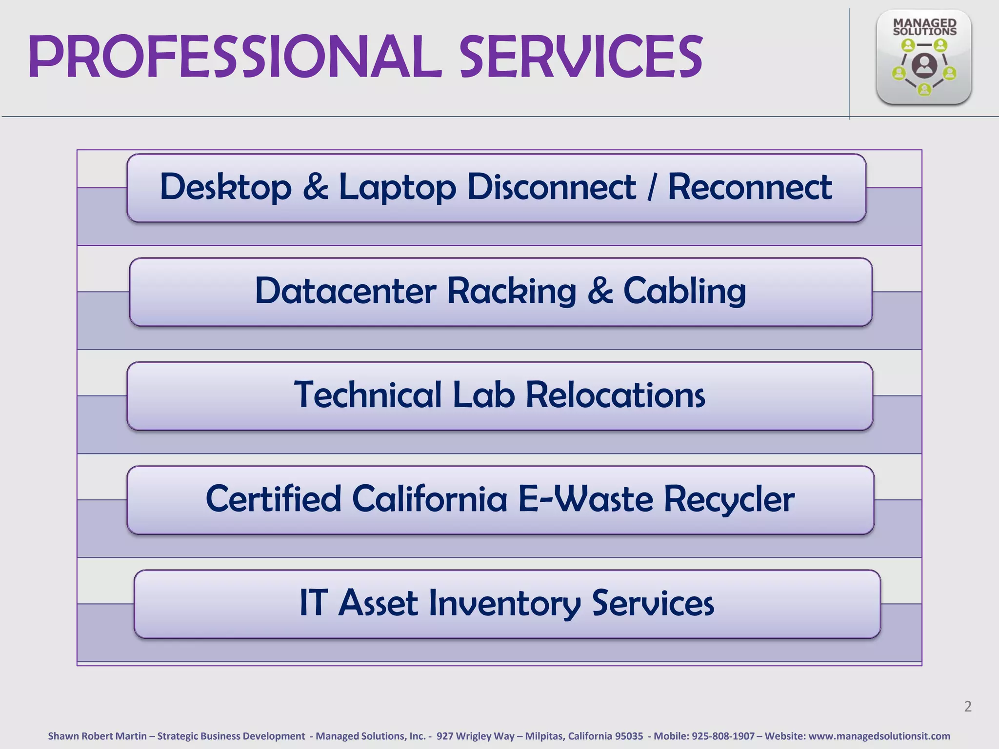 Managed Solutions, Inc. provides technical relocation services including desktop and laptop relocation, datacenter racking and cabling, and IT asset inventory. They have experienced technicians and project managers who perform services like disconnecting and reconnecting computers, servers, and switches. Managed Solutions also offers pre-move planning, asset inventory, and post-move support for office, datacenter, and lab relocations.