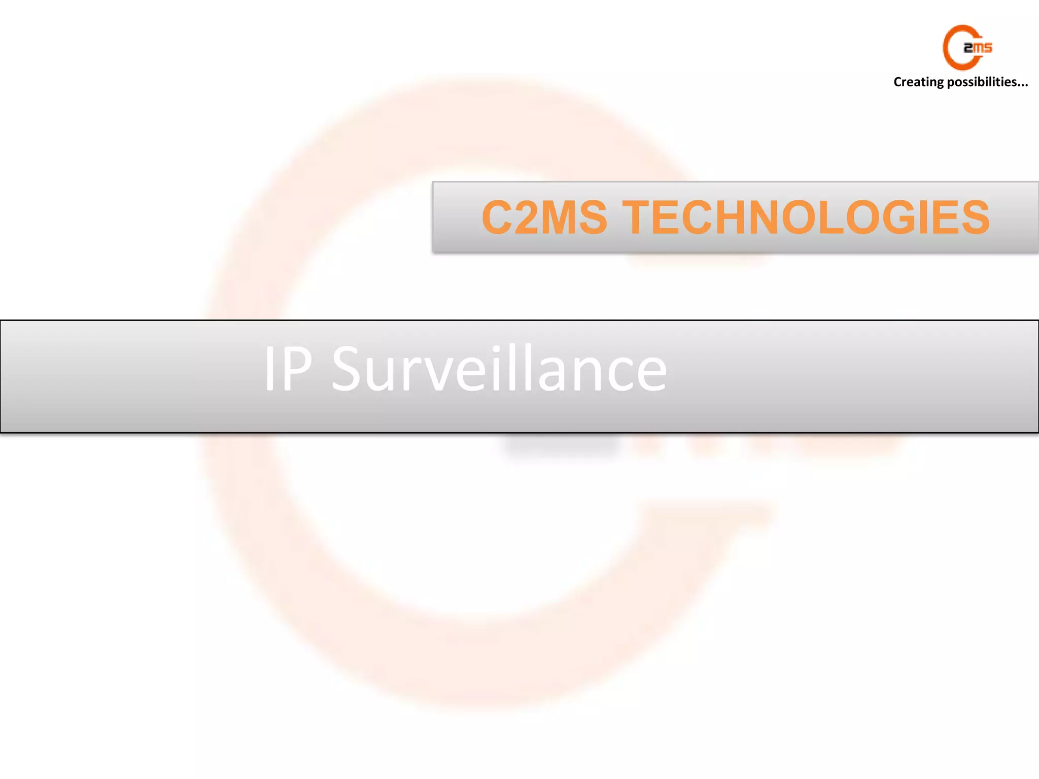 C2MS Technologies provides IP surveillance and video analytics solutions. It has over 150 customers across 6 cities in South and East India. C2MS offers on-premise and hosted surveillance systems with features like motion detection, remote access, and video analytics. For implementation, C2MS handles design, installation, and support while owning the full solution.