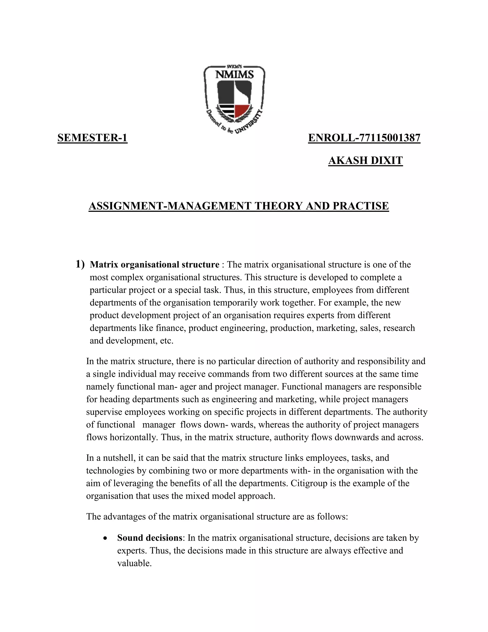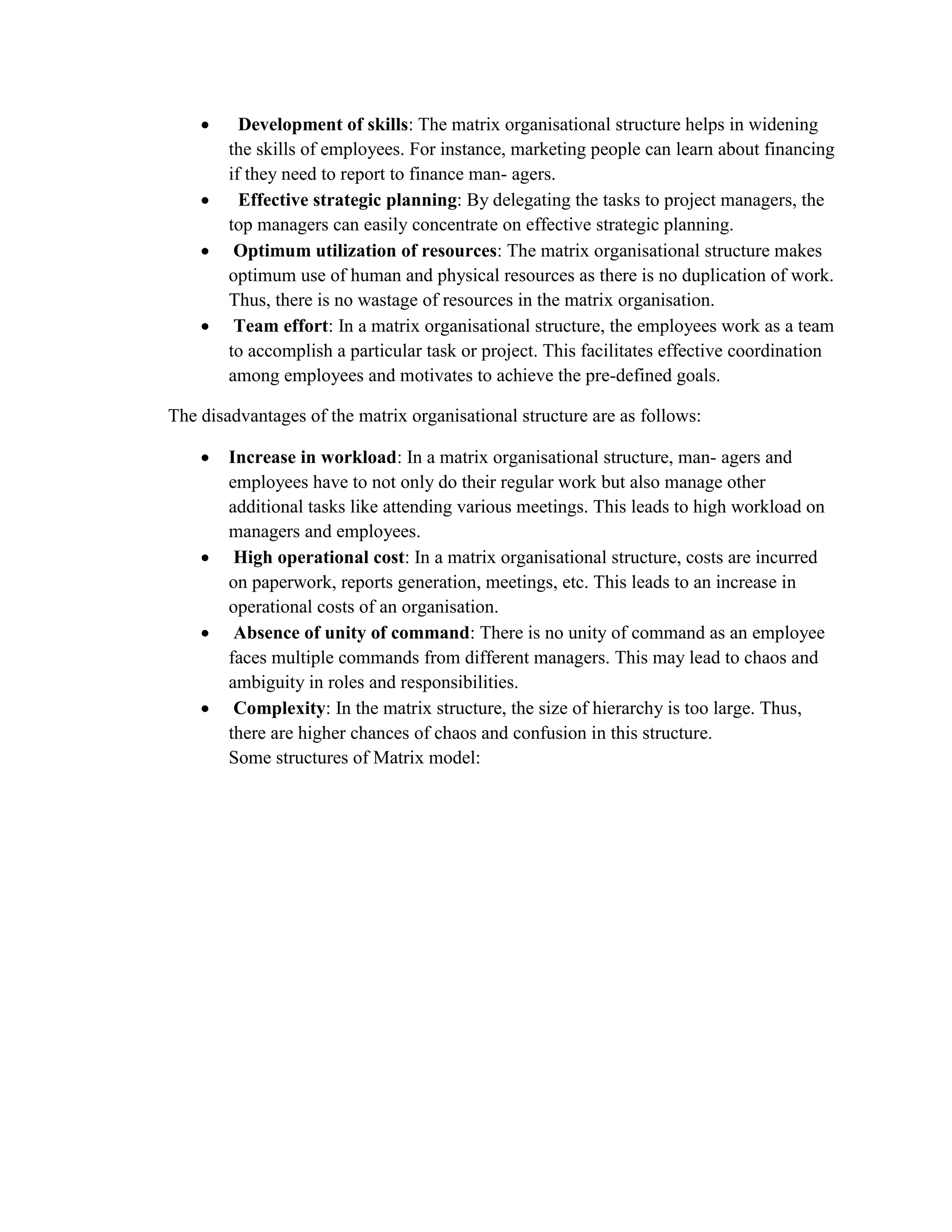 The document discusses different types of organizational structures - functional, divisional, matrix, and project-based structures. It provides examples of each type of structure and analyzes their advantages and disadvantages. The matrix structure combines functional and project-based reporting where employees report to both a functional manager and project manager. While the matrix structure aims to leverage different departments, it often results in increased bureaucracy, workload, and lack of clear responsibility. Finding the most effective organizational structure depends on the needs and goals of the specific organization.