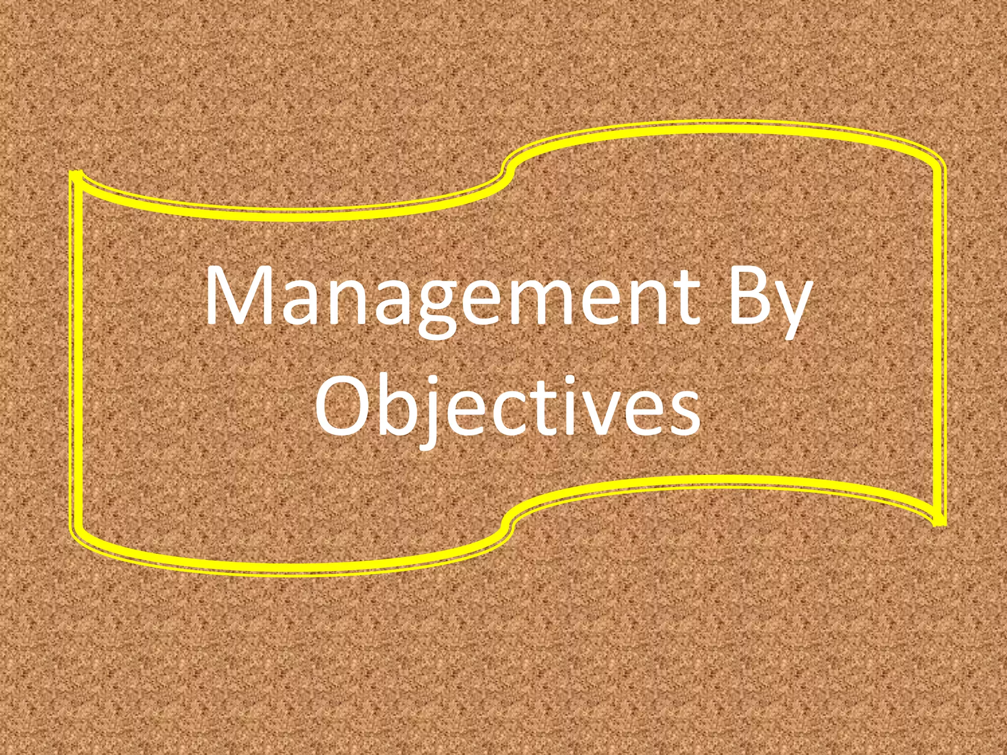 Management by objectives (MBO) is a process where managers and employees jointly set objectives for employees' work and assess their performance against these objectives. It involves participative goal setting, choosing actions, and periodic performance reviews. MBO aims to align individual employee goals with organizational goals to improve planning, motivation, and performance management. However, some weaknesses include that goal setting can be time consuming and difficult, participation may be challenging, and it risks becoming too inflexible or pressure-oriented.