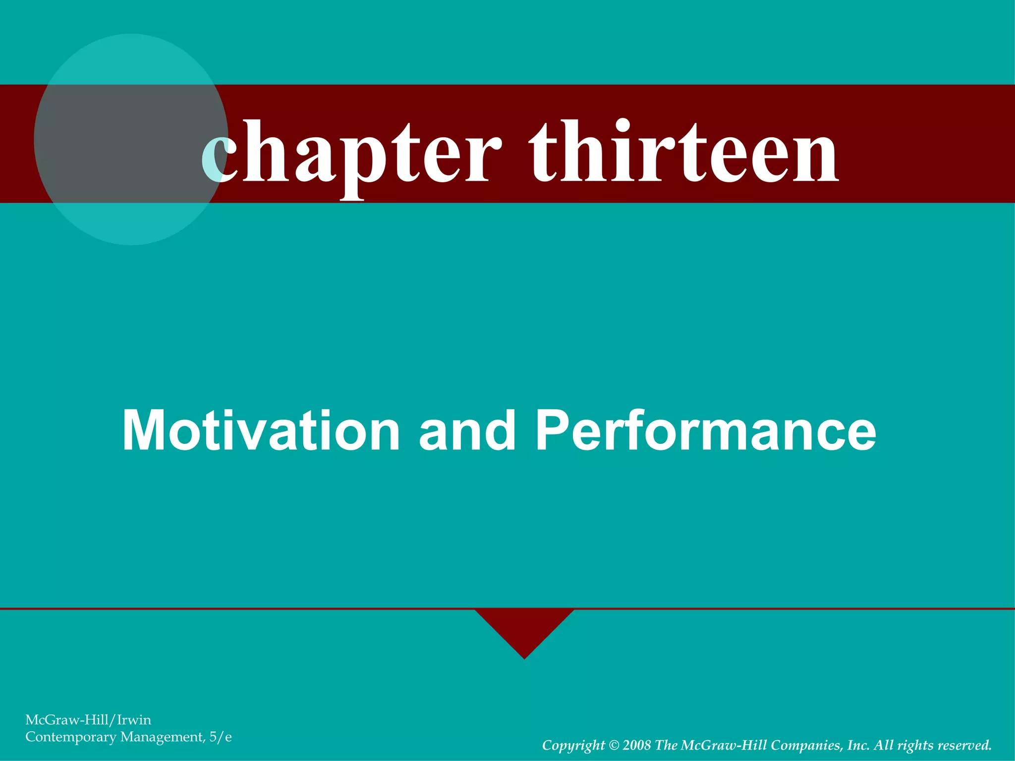 - Goal setting theory where specific difficult goals motivate performance.
