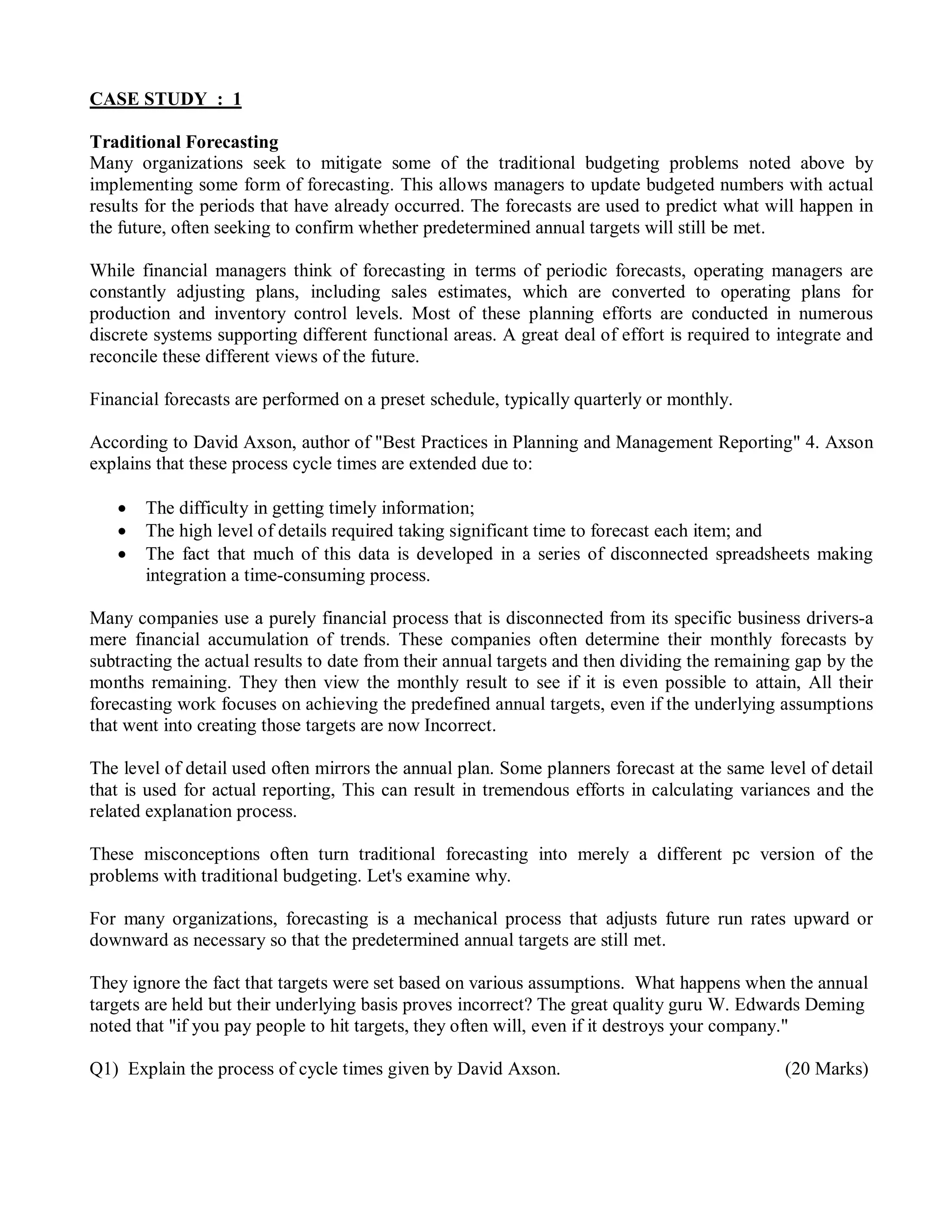 1. David Axson explains that traditional forecasting cycle times are extended due to the difficulty in getting timely information, the high level of detail required which takes significant time, and the fact that data is developed across disconnected spreadsheets making integration time-consuming.