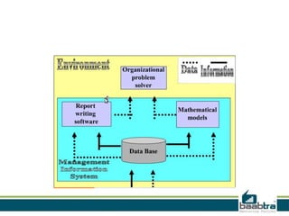 This document provides information about management information systems (MIS). It was prepared by trainees of Baabtra as part of a mentoring program and is not an official Baabtra document. The document defines MIS as a system that provides organizations with information to manage themselves efficiently and effectively. It notes that MIS have three primary components: technology, people, and data. MIS gives managers the information they need to make decisions by producing regular reports from transaction data to inform decision making. Contact information is provided for questions.