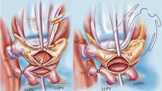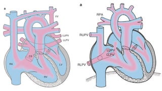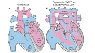 This document discusses the diagnosis and management of total anomalous pulmonary venous connection (TAPVC). It covers the types of TAPVC, diagnostic tools including ECG, CXR, echocardiography and catheterization, and surgical and interventional treatment options. The key points are: