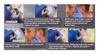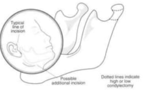 The document outlines temporomandibular joint (TMJ) dislocation, a rare yet impactful condition involving the displacement of the mandibular condyle from its normal position. It elaborates on the anatomy, epidemiology, causes, clinical presentation, diagnosis, and various management techniques of TMJ dislocation, highlighting both acute and chronic cases. The treatment approaches range from conservative methods and minimally invasive procedures to surgical interventions based on the severity and nature of the dislocation.