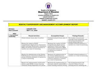 MONTHLY SUPERVISORY AND MANAGEMENT ACCOMPLISHMENT REPORT