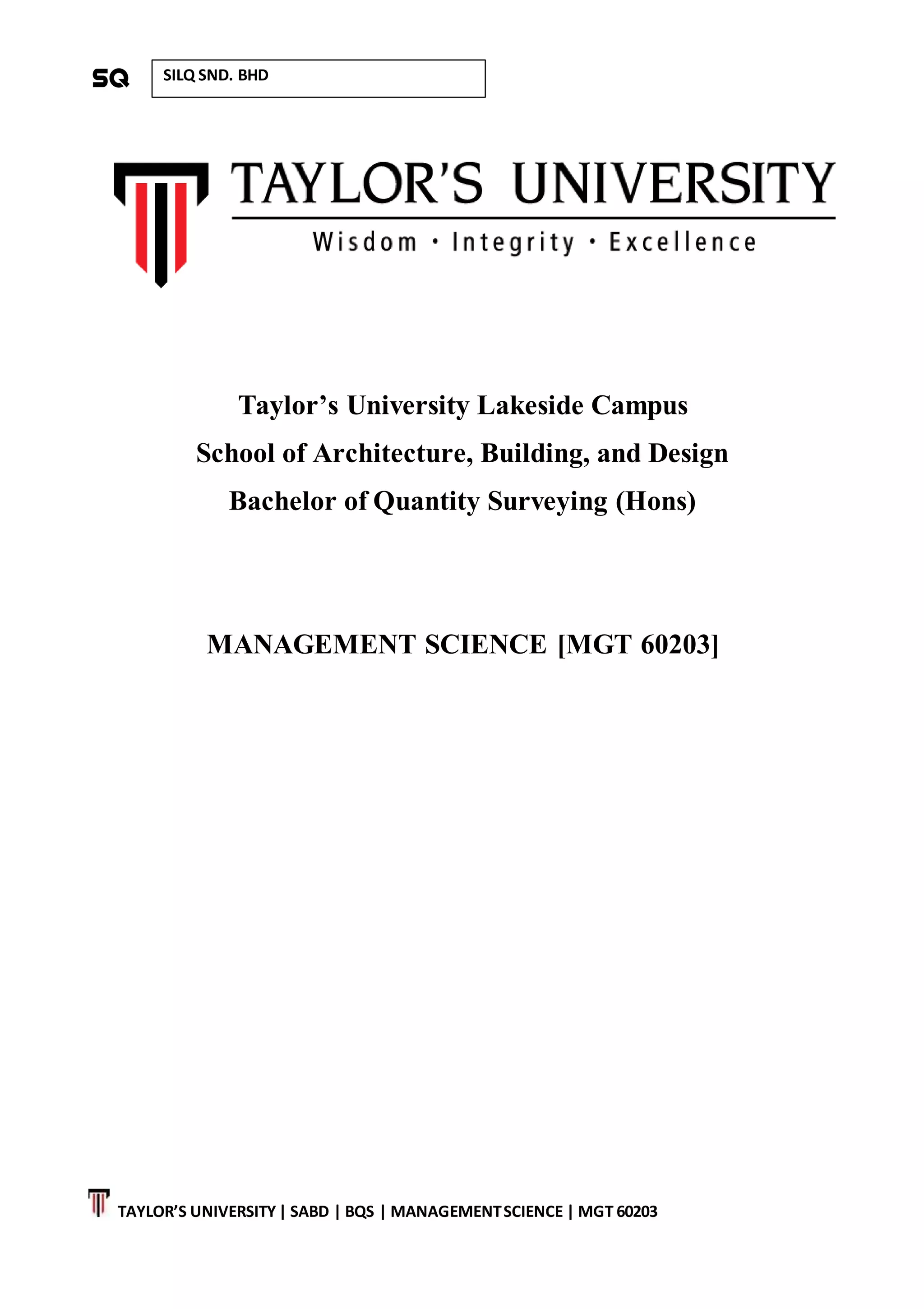This document describes SILQ Sdn Bhd, a property development company in Malaysia. It provides information on the company's vision, mission, goals, leadership, organizational structure, departments, and training courses. The company aims to be an internationally admired property developer. It has short term goals of providing affordable housing and long term goals of achieving high revenue and expanding overseas. The document outlines the roles and responsibilities of different management levels and departments within the company's hierarchical structure. It also describes an occupational health and safety training course provided to employees.