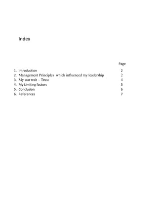 This document provides an overview of the author's leadership philosophy and principles. Some key points: