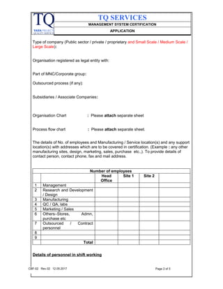 MANAGEMENT SYSTEM CERTIFICATION. APPLICATION. TATA PROJECTS. QUALITY SERVICE