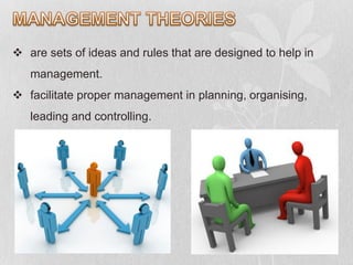 1. Henri Fayol emphasized organizational structure with principles like division of labor and unity of command. F.W. Taylor's scientific management broke tasks into timed components to increase efficiency but ignored human factors.