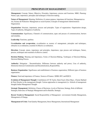 management. It also covers management functions like planning, organizing, leading, controlling and decision