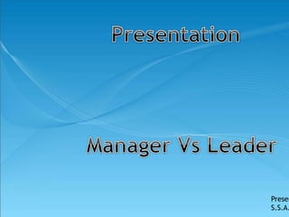 The document compares and contrasts managers and leaders. It states that managers are responsible for planning, organizing, and coordinating work, while leaders inspire and motivate others. Managers focus on systems and structure and have a short-term view, whereas leaders focus on people and have a long-term perspective. The document also outlines the different roles of managers and leaders in planning, organizing, leading, and controlling.