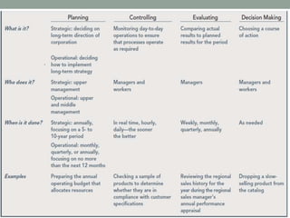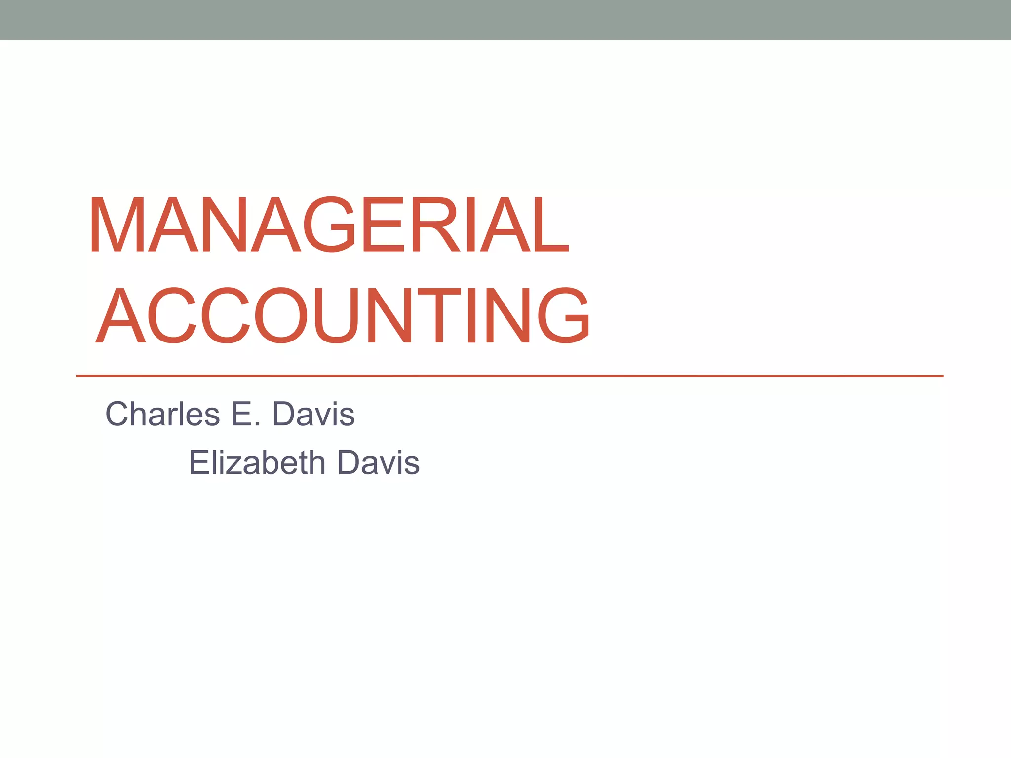 This document provides an overview of managerial accounting. It begins by defining managerial accounting and describing how it differs from financial accounting. Managerial accounting provides information to managers within an organization to help them plan, direct operations, and control the business. The document then discusses how the information needs of a business are determined by its overall strategy and how accounting information can help monitor strategic performance using tools like the balanced scorecard. Finally, it emphasizes the importance of ethical behavior in managerial accounting and how an organization's code of conduct helps guide decision making.