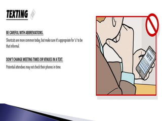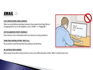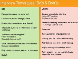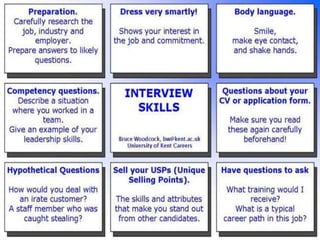This document discusses various topics related to presentations and communication skills. It covers presentation skills and techniques, the different types of presentations including informative, instructional, arousing, and persuasive. It also discusses video conferencing systems, formal and informal interviews, progressive and group interviews, and communication etiquettes. Planning, developing, and rehearsing effective presentations are also addressed.