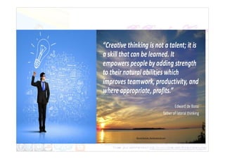 R. Ravindra Kumar is a seasoned life coach and regional manager with 30 years in the life insurance sector, dedicated to nurturing creativity in management. He emphasizes the significance of creative thinking for organizational adaptability and success, asserting that everyone possesses the capacity for creativity. The document outlines strategies to optimize creative faculties, overcome mental blocks, and advocates for an innovative workplace culture to thrive in a changing global environment.