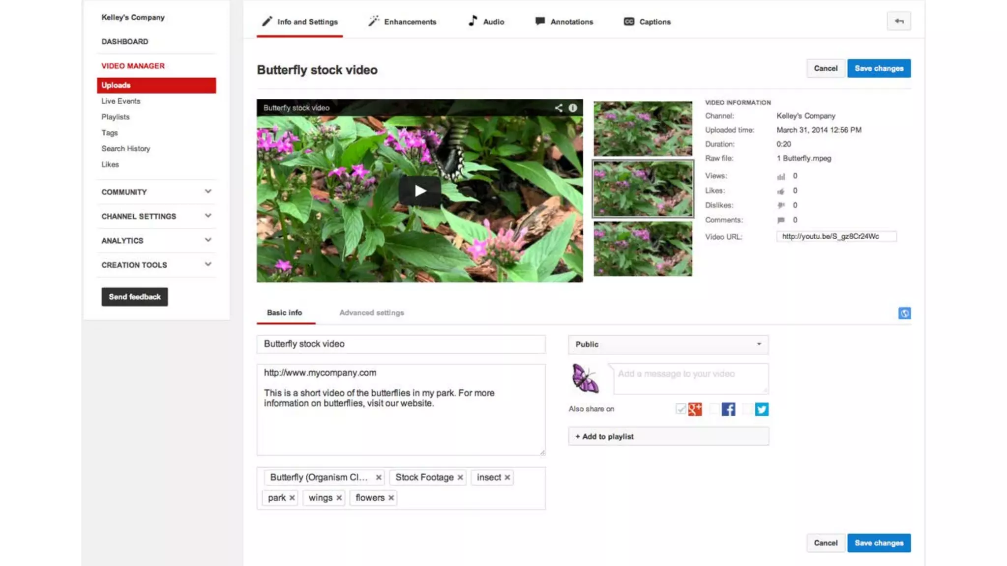 Detailed channel settings and various methods for promoting YouTube channels and videos.