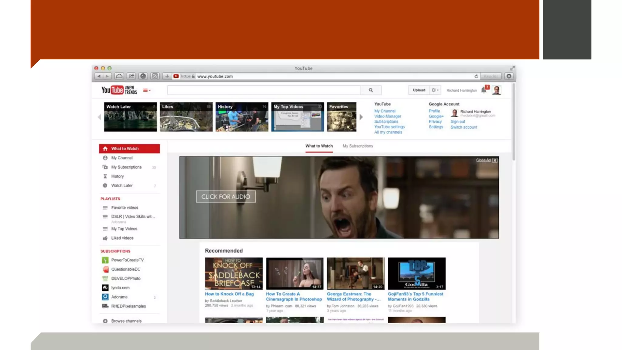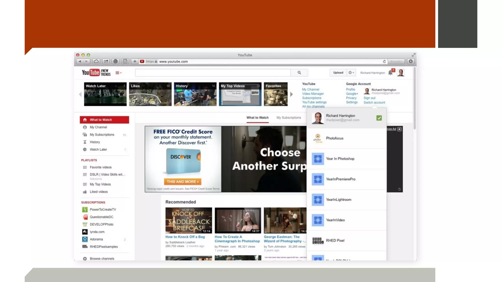 Introduction to managing a YouTube channel by Richard Harrington & Kelley Slagle from RHED Pixel.