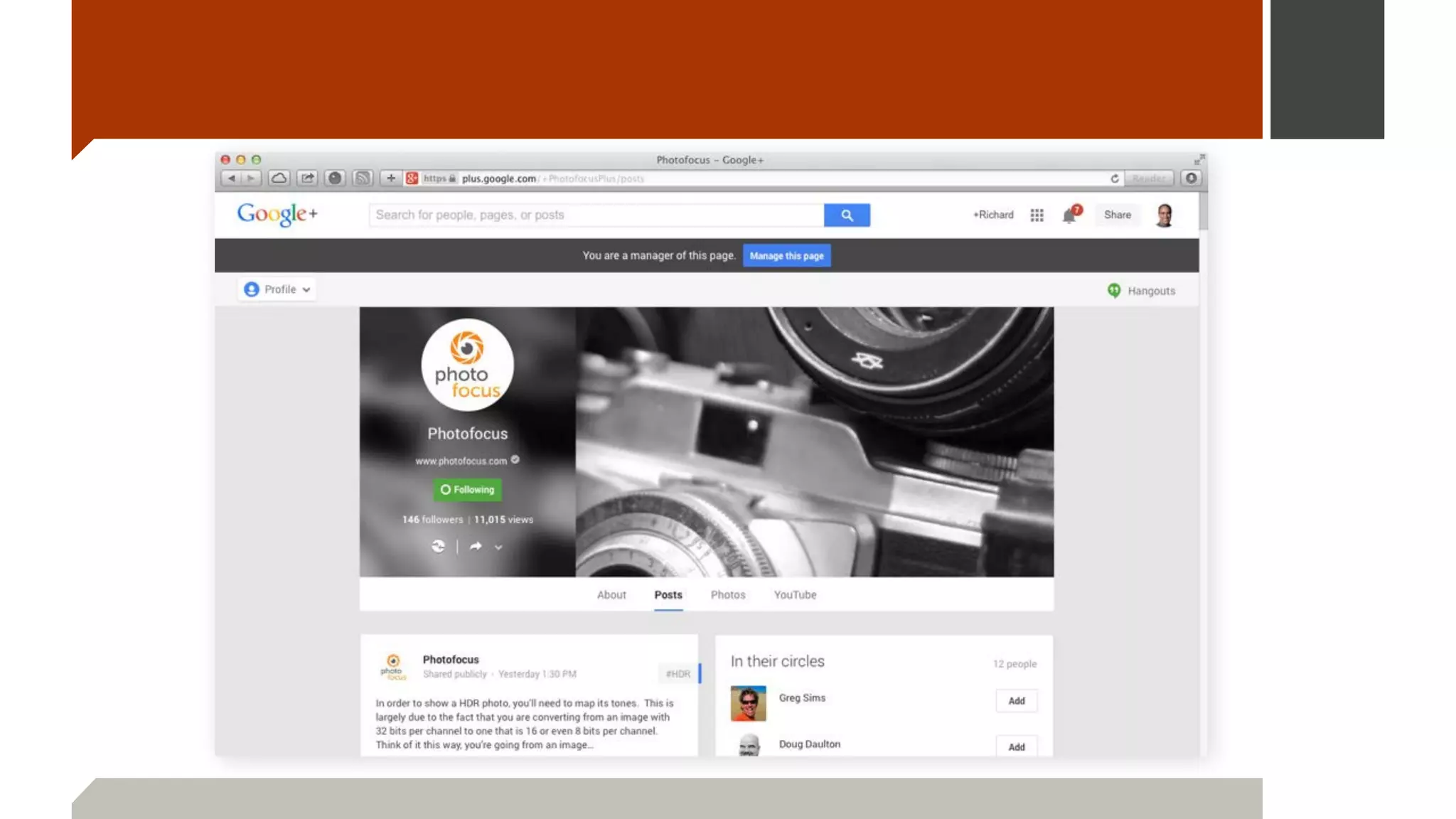 Managing a YouTube channel requires branding and consistency. The presenters will discuss strategies for setting up and customizing a YouTube channel, including connecting it to a Google+ page or profile, uploading and optimizing video content, and using analytics to promote the channel and build a subscriber base. They will also provide an overview of their video production company RHED Pixel and the types of clients and content they work with.