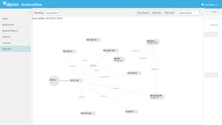 The document discusses secure management of application connectivity during mergers and acquisitions (M&A), presenting various scenarios such as company integrations and splits. It outlines the importance of mapping applications, identifying security challenges, and provides solutions for effective migration. The document emphasizes the need for proper visibility, security controls, and the use of automated tools to facilitate application migrations.
